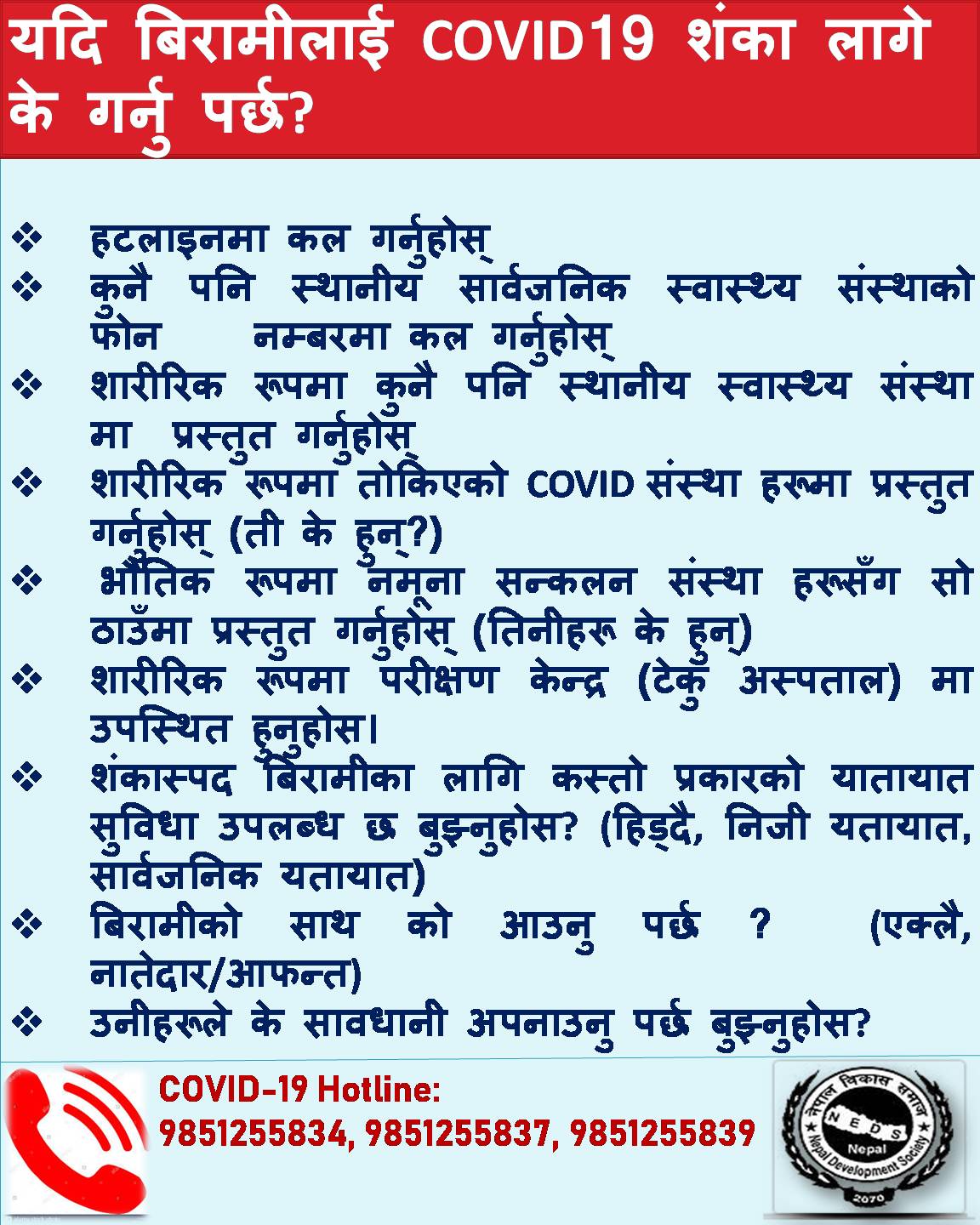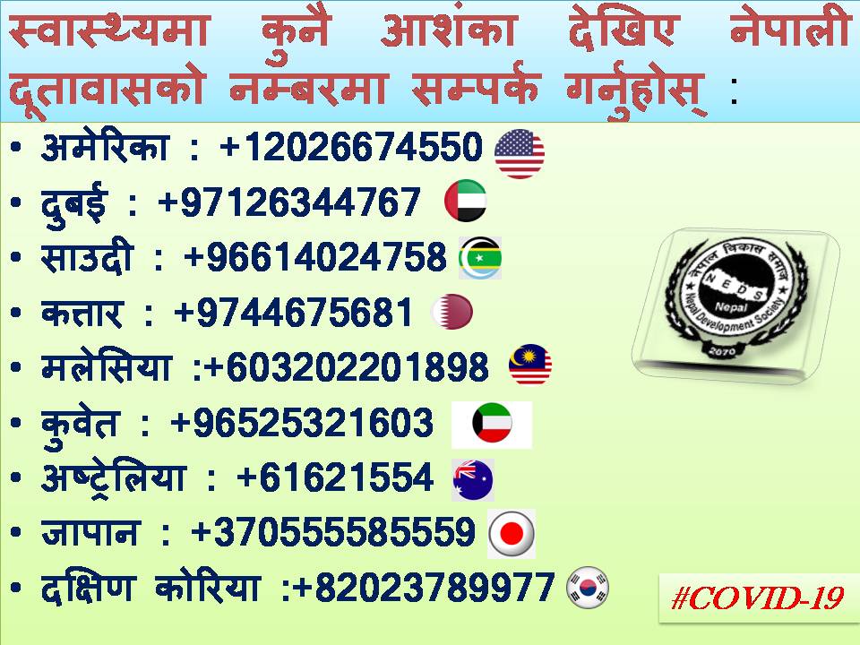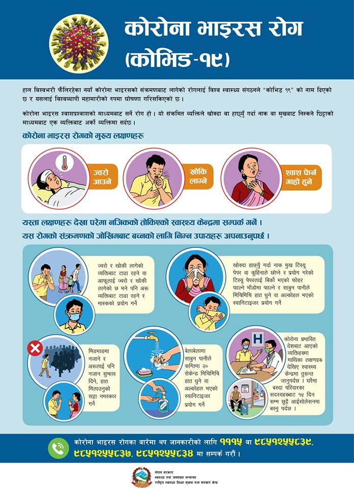 कोरोना भाइरस बारेमा जानकारी तथा परामर्स लिनका लागि स्वास्थ्य तथा जनसंख्या मन्त्रालयको तलको नम्बरमा कल गर्नुहोस् |